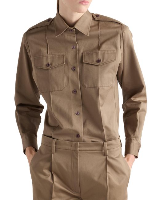 Menswear fit Classic collar Button closure Long sleeves Flapped patch pockets Fabric triangle logo 100% cotton, 100% trochus niloticus Imported. Lsd Rtw - Prada Rtw > Prada > Saks Fifth Avenue. Prada. Color: Grey. Size: 2.