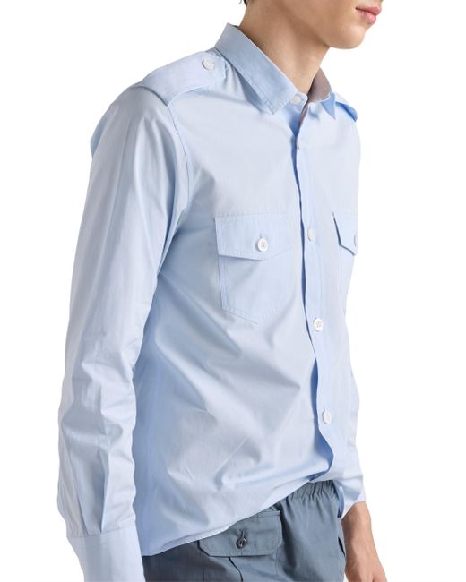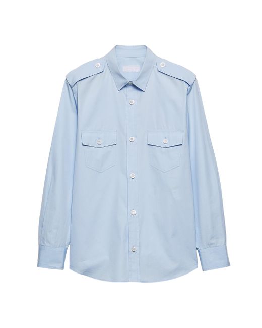 Classic fit Classic collar Flapped patch pockets with button Rounded hem Classic cuff Mother-of-pearl button closure Fabric triangle logo on the back Imported 100% Cotton - 100% Trochus Niloticus. Lsd Rtw - Prada Rtw > Prada > Saks Fifth Avenue. Prada. Color: Blue. Size: 15.75.