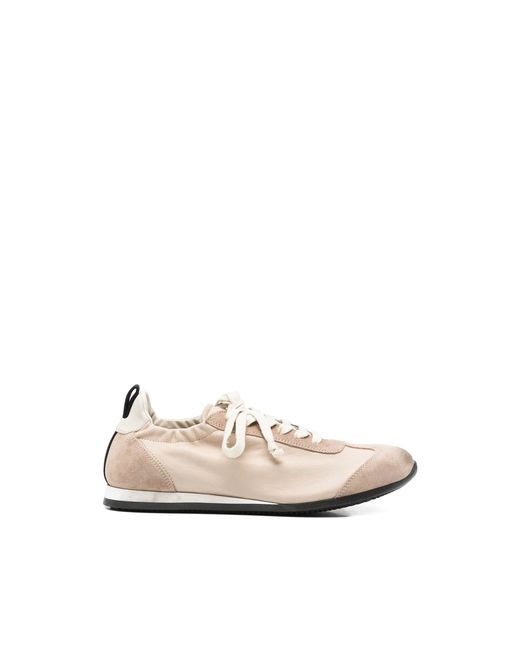 beige suede panels lace-up fastening elasticated detailing pull-tab at rear flat sole