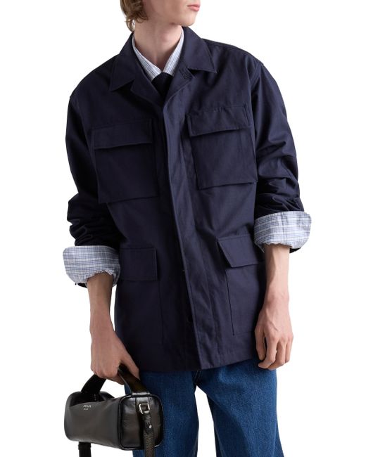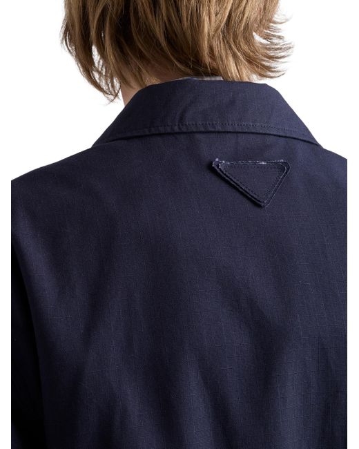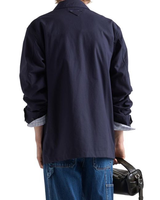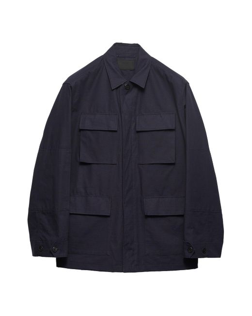 Oversized fit Shirt-style collar Straight sleeves Button closure Flapped patch pockets with button Straight cuff with adjustable button closure Drop shoulder Straight hem Partially lined Fabric triangle logo 100% Cotton Imported. Lsd Rtw - Prada Rtw > Prada > Saks Fifth Avenue. Prada. Color: Blue. Size: Medium.