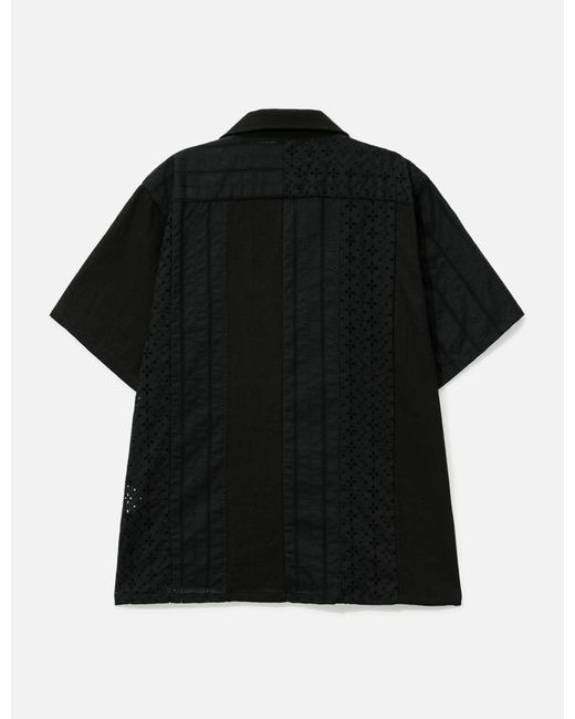 NÒMARHYTHM TEXTILELace Patchwork ShirtLinen mesh and lace panels constructionOpen collarFront button closureShort sleeveMade in JapanColor: Black