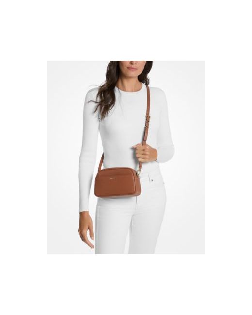 Complete your look in style with this Michael Kors crossbody handbag, designed with a secure zip closure and accented by elegant gold hardware. It includes both a front and back slip pocket, offering convenient storage for essentials.