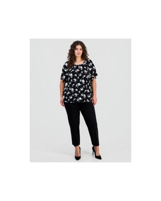 A charming print lends a statement style to this keyhole blouse by Ak Anne Klein, this plus size piece is framed with a sleek, elbow-length sleeve.