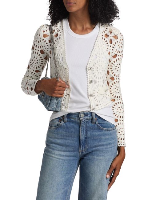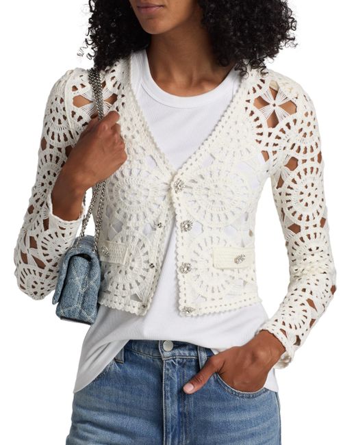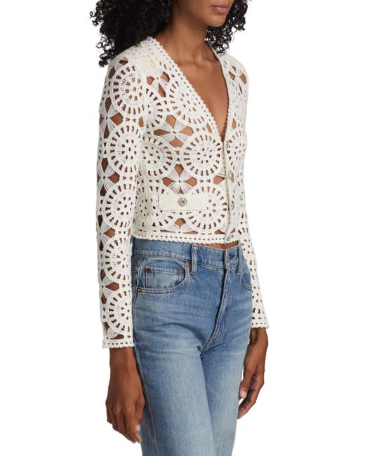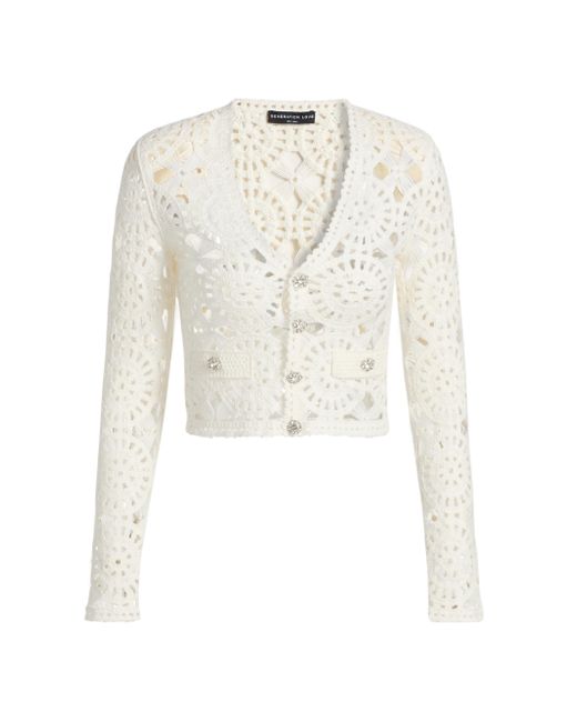 Generation Love's Melody open-knit crochet cardigan is designed with scallop trim. V-neck Long sleeves Scallop trim Button-front closure 100% acrylic Dry clean Imported SIZE & FIT About 20" from shoulder to hem Model measurements: 5'10" tall Model is wearing a US size Small. Contemporary Sportswear - Casual Separates > Generation Love > Saks Fifth Avenue. Generation Love. Color: White. Size: XS.