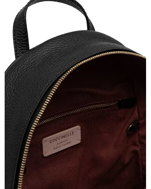 black single top handle front zip pocket adjustable shoulder straps zip fastening pebbled finish logo lettering