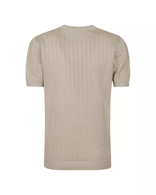 beige textured knit round neck short sleeves ribbed hem ribbed cuffs