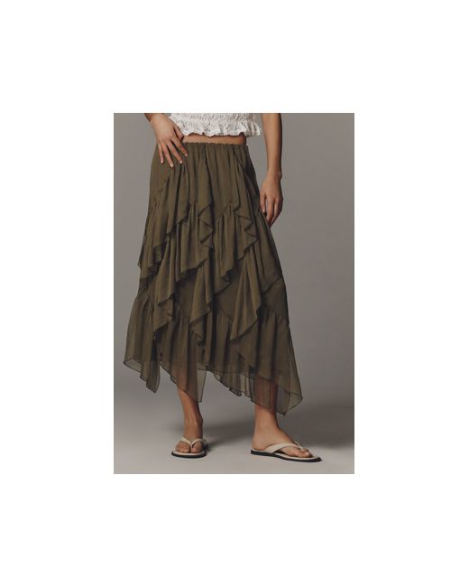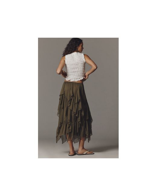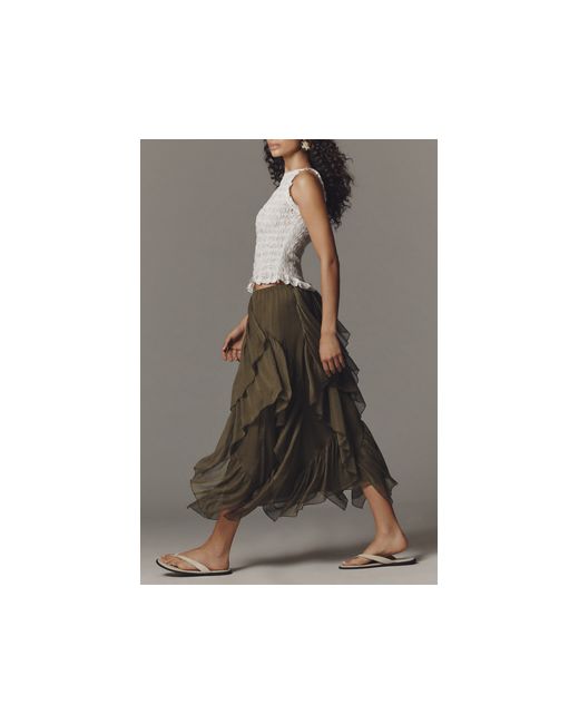 By Mare Mare 100% Polyester Pull-on styling Layered ruffle detailing Dry clean Imported Layered Ruffle Midi Skirt by Mare Mare in Green, Women's Size: XS, Polyester at Anthropologie