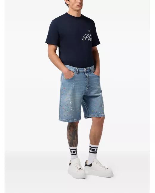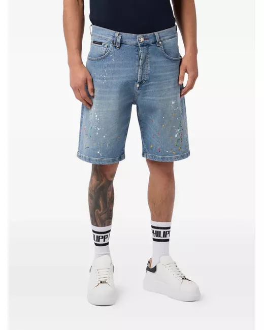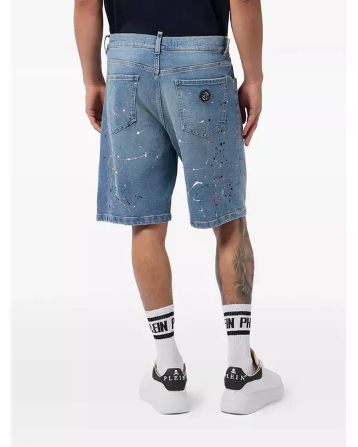 Men's Blue paint-splatter-effect denim shorts