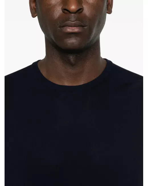 blue crew neck semi-sheer finish long sleeves ribbed cuffs straight hem