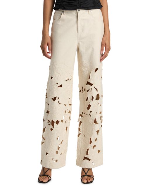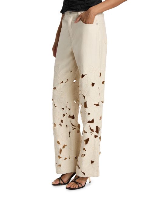 Crafted of structured cotton denim and cut for a relaxed straight fit, the Betty jeans from SIMKHAI are defined by embroidered floral cut outs from the knee down. Five-pocket style Zip fly, button closure 100% cotton Dry clean Imported SIZE & FIT Rise: about 11" Inseam: about 33" Leg opening: about 20.5" Model measurements: 5'10" tall Model is wearing a US size 4. Contemporary Sportswear - Workshop > Simkhai > Saks Fifth Avenue. SIMKHAI. Color: Marshmallow. Size: 31.
