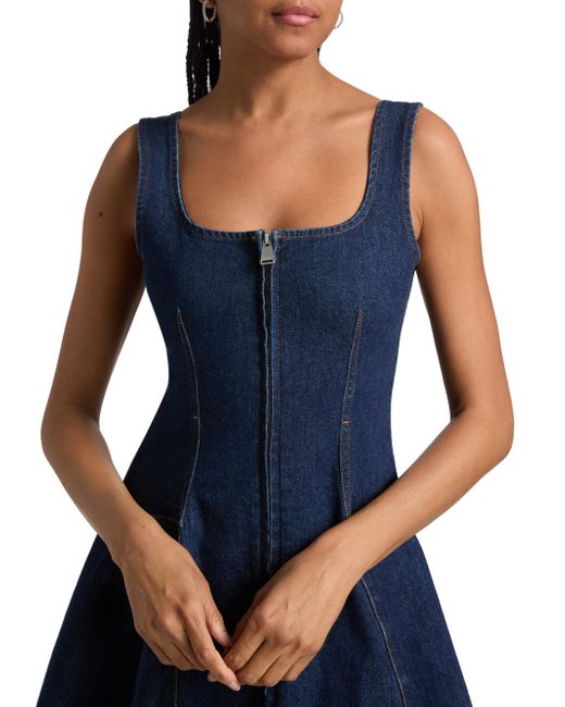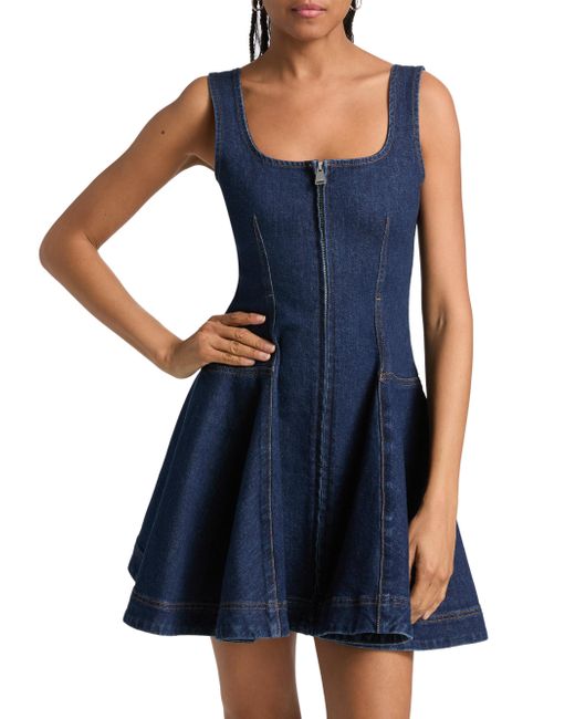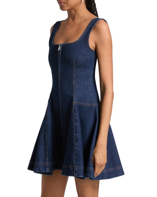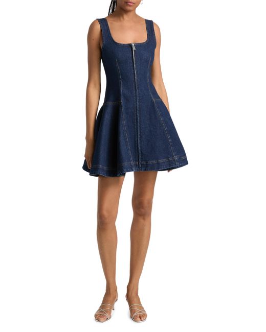 Cut in an A-line silhouette, the Eleodra sleeveless minidress from SIMKHAI is crafted of stretch cotton denim, featuring contrast stitching. Scoop neck Sleeveless Zip-front closure 99% cotton/1% elastane Lining: 100% cotton Dry clean Imported SIZE & FIT About 33.75" from shoulder to hem Model measurements: 5'10" tall Model is wearing a US size Small. Contemporary Sportswear - Workshop > Simkhai > Saks Fifth Avenue. SIMKHAI. Color: Imperial. Size: 4.