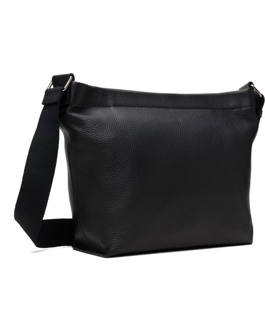 Grained leather messenger bag. · Adjustable crossbody strap · Logo embossed at face · Zip closure · Patch pocket at interior · Suede interior · H9.5 x W13 x D4 Supplier color: Black