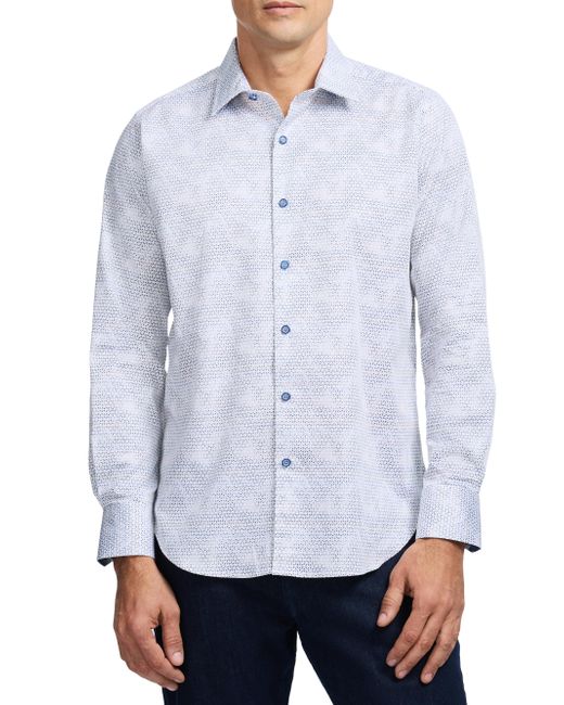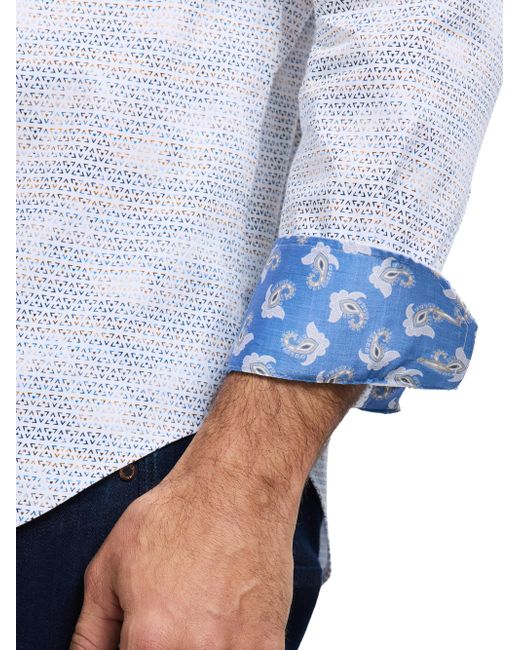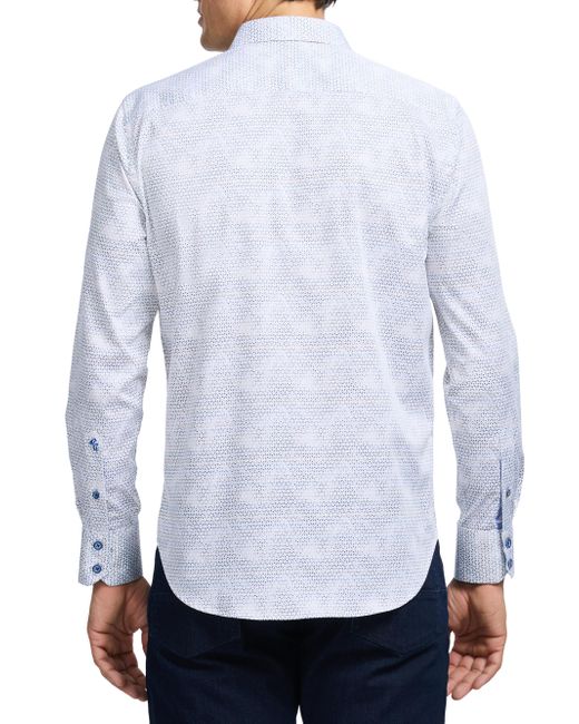 Crafted of stretch satin cotton, Robert Graham's Akehurst long-sleeve button-front shirt features a geo print with a contrast at the collar and cuffs. A point collar, button cuffs, and shirttail hem complete the design. Point collar Long sleeves, button cuffs Button-front closure Shirttail hem 97% cotton/3% spandex Machine wash Imported SIZE & FIT About 26" from shoulder to hem Model measurements: 6'2" tall, 40" chest Model is wearing a US size Medium. Mens Modern Coll & Outer - Contemp Classic Collecti > Robert Graham > Saks Fifth Avenue. Robert Graham. Size: Small.