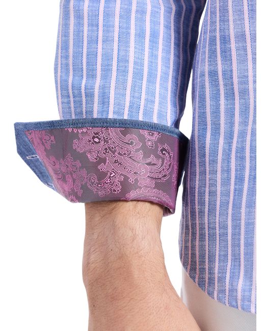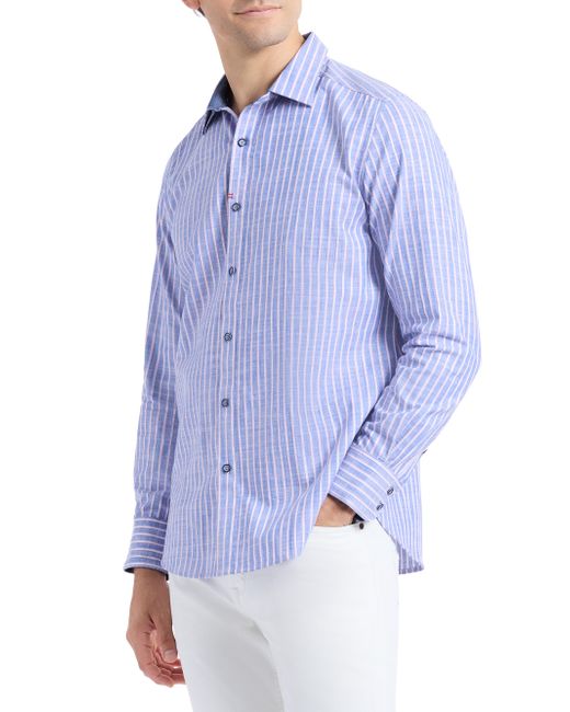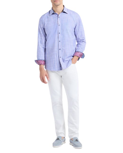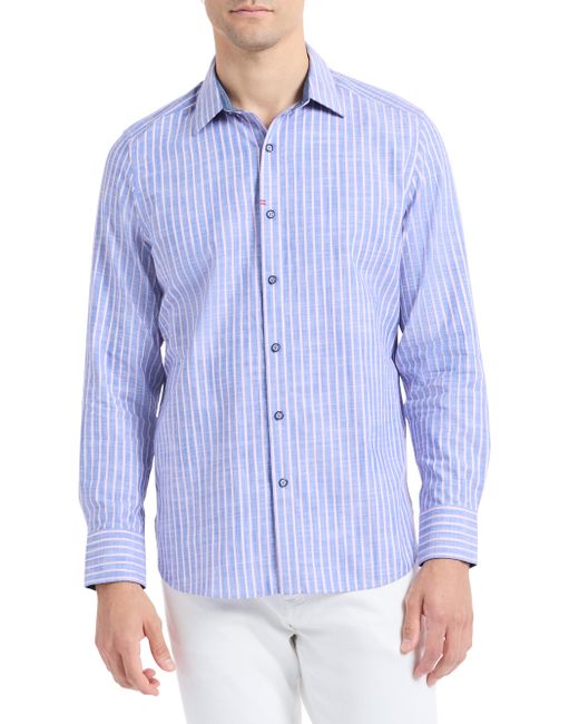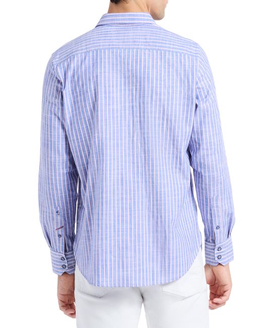Crafted of cotton, this Fardella button-front shirt from Robert Graham features a classic stripe with a modern twist. Point collar Long sleeves, button cuffs Shirttail hem Button-front closure 100% cotton Machine wash Imported SIZE & FIT Model measurements: 6'2" tall, 40" chest Model is wearing a US size Medium. Mens Modern Coll & Outer - Contemp Classic Collecti > Robert Graham > Saks Fifth Avenue. Robert Graham. Color: Indigo. Size: Small.