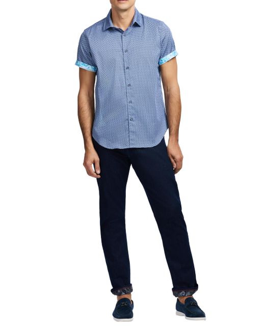 The Grinnell cotton short-sleeve shirt from Robert Graham features a micro geo print and is finished with a contrast print at the collar for a signature twist. Point collar Short sleeves Button-front closure 97% cotton/3% spandex Machine wash Imported SIZE & FIT Model measurements: 6'2" tall, 40" chest Model is wearing a US size Medium. Mens Modern Coll & Outer - Contemp Classic Collecti > Robert Graham > Saks Fifth Avenue. Robert Graham. Size: Small.
