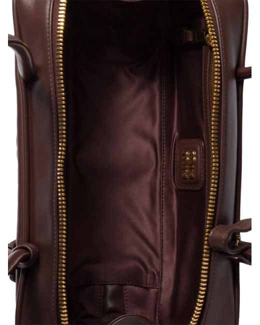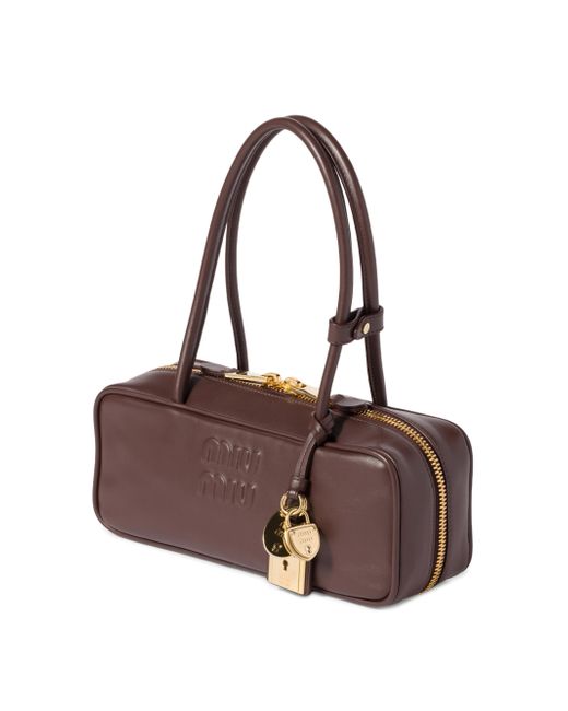 Leather handles Removable trick Gold-tone hardware Zipper closure Cotton satin lining with zipper pocket Embossed lettering logo on the front 100% Calf leather 28 cm W x 11.5 cm H x 8 cm L / 11'' W x 4.5'' H x 3.1'' L Imported. Lsd Handbags - Miu Miu > Miu Miu > Saks Fifth Avenue. Miu Miu. Color: Brown.