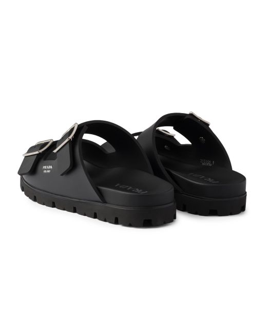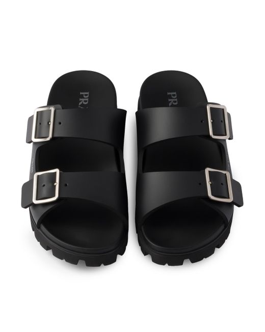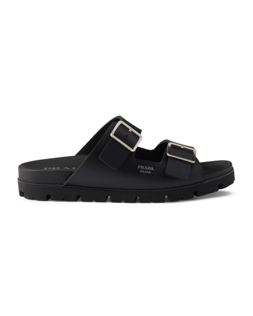 Upper with straps and metal buckles Screen-printed logo Rubber lug sole Heel height: 25 mm Leather-covered insole Imported 100% Ethylene-vinyl acetate. Lsd Rtw - Prada Rtw > Prada > Saks Fifth Avenue. Prada. Color: Black. Size: 9.