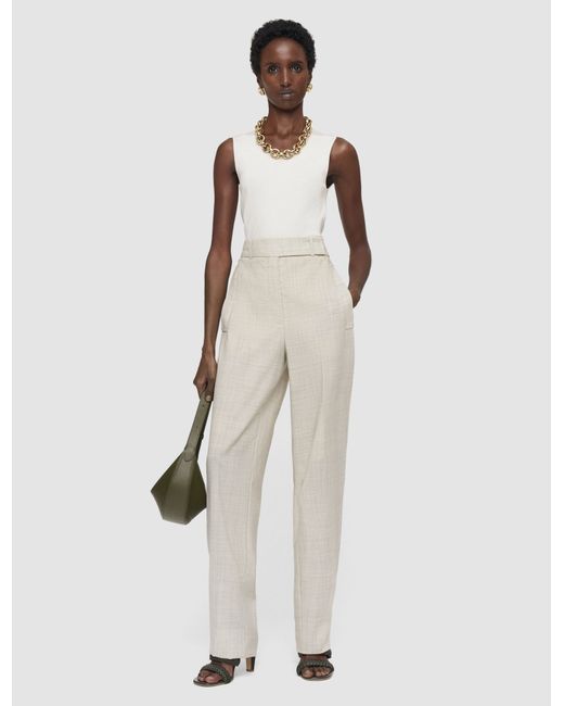 The Zen Light Wool Trousers are a barrel-leg style crafted from fine virgin wool. This modern silhouette, with relaxed tailoring appeal, features a wide waistband with an extended tab, bordered side pockets, and pressed creases for added definition and structure.