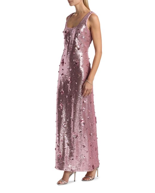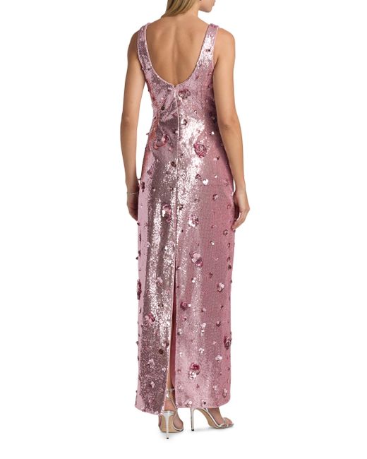 The Tindra gown from SIMKHAI shimmers with allover sequin embellishing. The glittery style features applied paillette flowers encircling the simple scoopneck silhouette. Scoopneck and scoopback Shoulder straps Back slit Concealed back zip closure 95% nylon/5% spandex Combo: 85% polyester/15% spandex Lining: 100% polyester Dry clean Imported SIZE & FIT About 60" from shoulder to hem Model measurements: 5'10" tall Model is wearing a US size 4. Dress Collections - Contemporary Evening > Simkhai > Saks Fifth Avenue. SIMKHAI. Color: Dusty Rose. Size: 10.