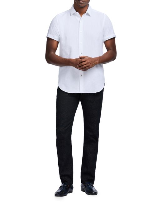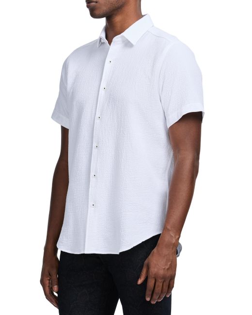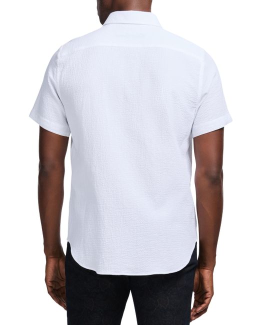Crafted of cotton, the Reid button-front shirt from Robert Graham features classic stripes and short sleeves. A contrast print at the collar and sleeves completes the design. Point collar Short sleeves Button-front closure Shirttail hem Contrast print at collar and sleeve 100% cotton Machine wash Imported SIZE & FIT Model measurements: 6'2" tall, 40" chest Model is wearing a US size Medium Easy, breezy, and built for warm-weather days, this button down style is made from soft yarn dye cotton that feels as good as it looks. The laid-back silhouette keeps things relaxed, while the classic stripe pattern brings just enough polish. Finished with a contrast print at the collar and sleeve for a subtle pop of personality. Point collarfull button front placketstriped yarn dye cottoncontrast print at collar and sleeveshort sleeveshirttail hem59% cotton, 41% viscosemachine wash coldimported. Easy, breezy, and built for warm-weather days, this button down style is made from soft yarn dye cotton that feels as good as it looks. The laid-back silhouette keeps things relaxed, while the classic stripe pattern brings just enough polish. Finished with a contrast print at the collar and sleeve for a subtle pop of personality. Point collarfull button front placketstriped yarn dye cottoncontrast print at collar and sleeveshort sleeveshirttail hem59% cotton, 41% viscosemachine wash coldimported. Point collar Short sleeve 100% cotton X Fur type: X x Fur origin: X Mwc Imported Classic X About 9 from shoulder to hem. Mens Modern Coll & Outer - Contemp Classic Collecti > Robert Graham > Saks Fifth Avenue. Robert Graham. Color: White. Size: Small.