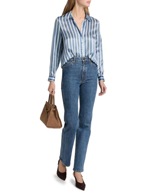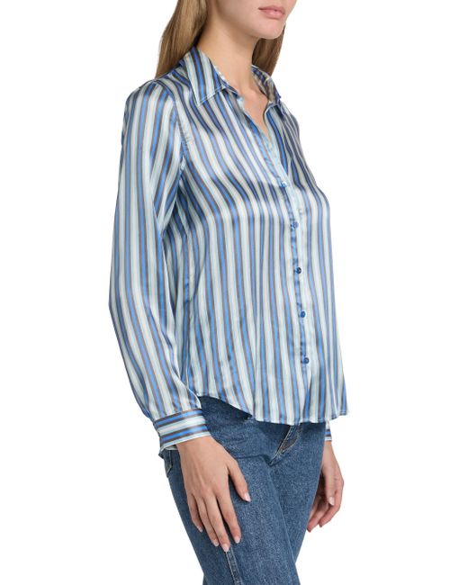 L'AGENCE's Tyler blouse is crafted of lustrous silk and adorned with a vibrant stripe pattern. Spread collar Long sleeves Button-front closure 100% silk Dry clean Imported SIZE & FIT About 26" from shoulder to hem Model measurements: 5'10" tall Model is wearing a US size Small ABOUT THE BRAND Founded in 2008, L'Agence marries Southern California ease with chic Parisian style. Using luxurious fabrics, the Los Angeles-based label delivers feminine collections that are both timeless and versatile. In 2015, the label launched a denim line in a range of sleek, impeccably tailored cuts. Contemporary Sportswear - Workshop > L'agence > Saks Fifth Avenue. L'AGENCE. Color: Blue Multi Herringbone Stripe. Size: XXS.