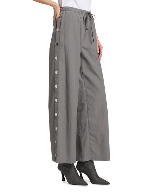 Cut to a wide-leg silhouette, L'AGENCE's Valkyrie pants are styled with a drawstring waistband and side snap closures. Drawstring waistband Side slip pockets 100% nylon Dry clean Imported SIZE & FIT Rise: about 10.25" Inseam: about 31.5" Model measurements: 5'10" tall Model is wearing a US size Small ABOUT THE BRAND Founded in 2008, L'Agence marries Southern California ease with chic Parisian style. Using luxurious fabrics, the Los Angeles-based label delivers feminine collections that are both timeless and versatile. In 2015, the label launched a denim line in a range of sleek, impeccably tailored cuts. Contemporary Sportswear - Workshop > L'agence > Saks Fifth Avenue. L'AGENCE. Color: Medium Grey. Size: XS.