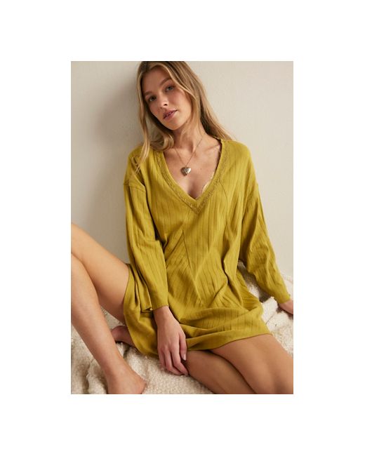 Our favorite soft cotton pointelle is now available in an oversized sleep tee silhouette, featuring contrast crochet trim, a wide V-neckline, and a draping, triangle-shaped design for an ultra-comfortable style. * Pointelle cotton fabrication * Pull-on oversized sleep tee * Long drop-shoulder sleeves End Game Pointelle Sleep Tee by Intimately at Free People in Acid Moss, Size: XS