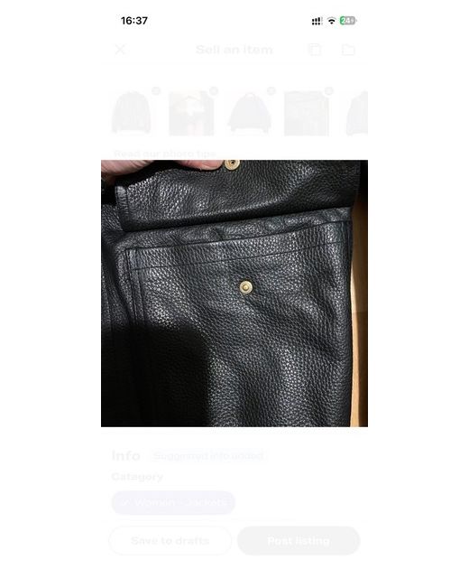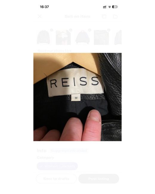 This item is a Reiss Cast Leather Bomber Jacket. It is made from supple grained leather and features a dual-zip front closure, a flat collar, and press-stud side pockets. The cuffs and hem are finished with ribbed, elasticated trims for a classic bomber silhouette. Key Features Material: 100% Grained Leather. Color: Black (also available in brown). Style: Bomber jacket. Hardware: Gold-tone metal hardware for the zip and press-studs. Lining: 100% Polyester lining. Pricing & Availability The Reiss Cast Leather Bomber Jacket typically retails for around £398 GBP