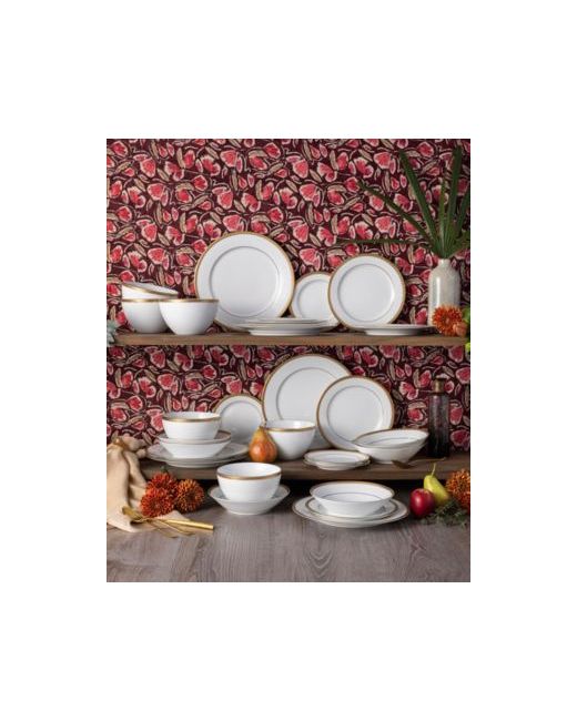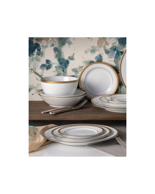 This Noritake Charlotta dinnerware set is rooted in classic elegance. Featuring prominent gold banding adorned with flowers and scrolling leaves, it's suitable for elegant dinners while remaining versatile enough for daily use.