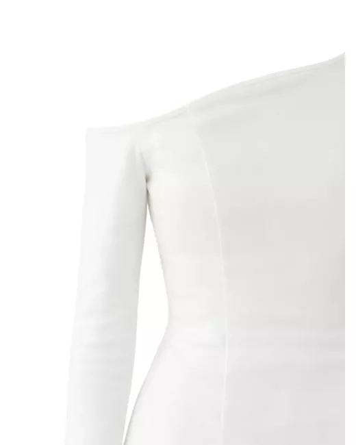 white one-shoulder asymmetric fitted sleeves princess seam on the sides