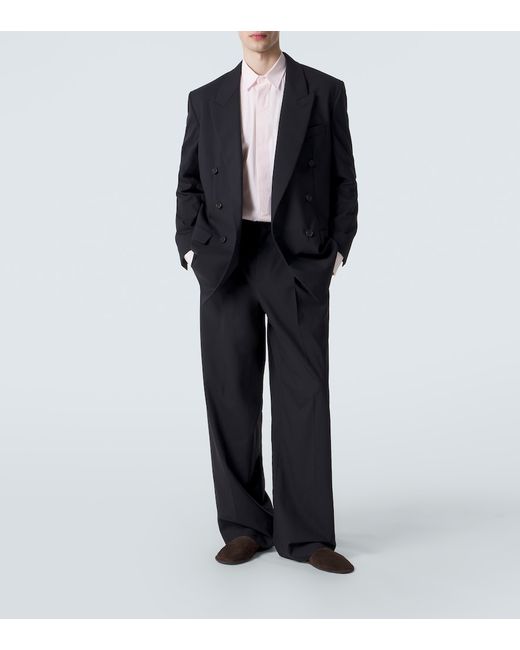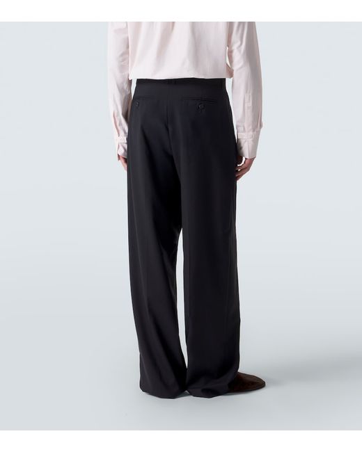 Material: 100% wool. Care instructions: dry clean. Made in Italy. Designer color name: Black. Lining: 100% silk. Belt loops. Pockets: jetted, back pockets. Closure: zipper fly, button fastening. Wool.
