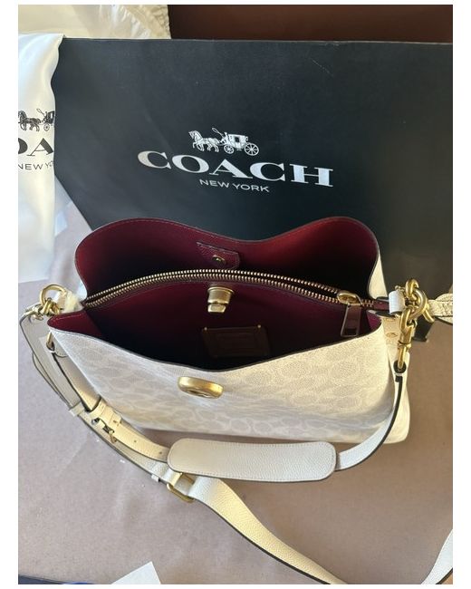 The Coach Willow Medium Leather Bucket Bag in Colorblock is a versatile and stylish handbag perfect for various occasions. With a medium size and a zip, snap, and turn lock closure, this bag provides both security and convenience. The pebbled leather exterior in beige with dark gunmetal hardware adds a touch of sophistication, while the dark grey and blue leather shoulder and crossbody straps offer ease of carrying. Featuring inner dividers, a mobile phone pocket, and bottom studs, this Coach bag combines fashion and functionality for the modern woman on the go.