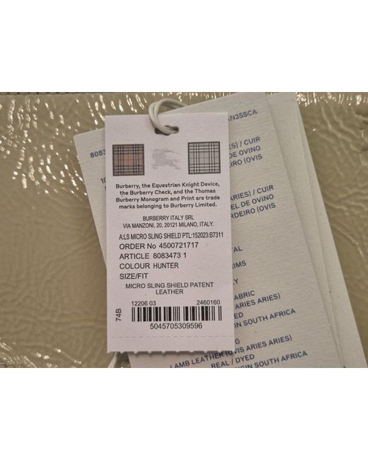 The Authentic Burberry Sling Shield Micro Shoulder Bag is a stylish shoulder bag. Made from patent leather, colour named as 'Hunter'-please see tag in photos. The gold metal handle/strap and hardware add a touch of glamour, while the hunter exterior colour gives it a sophisticated finish. This Burberry bag is a timeless and classic addition to any wardrobe. Size L 21cm, H 10cm, W 3cm. Strap 40cm. Ship with dust bag, perfect for gifting. Any questions please get in contact.