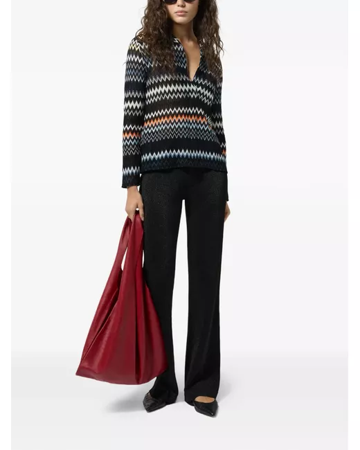 Brown Grey Glitter Zig Zag Knit Loose Leg L New Tags