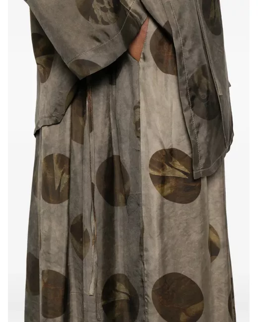 grey and brown print elasticated waistband gathered detail