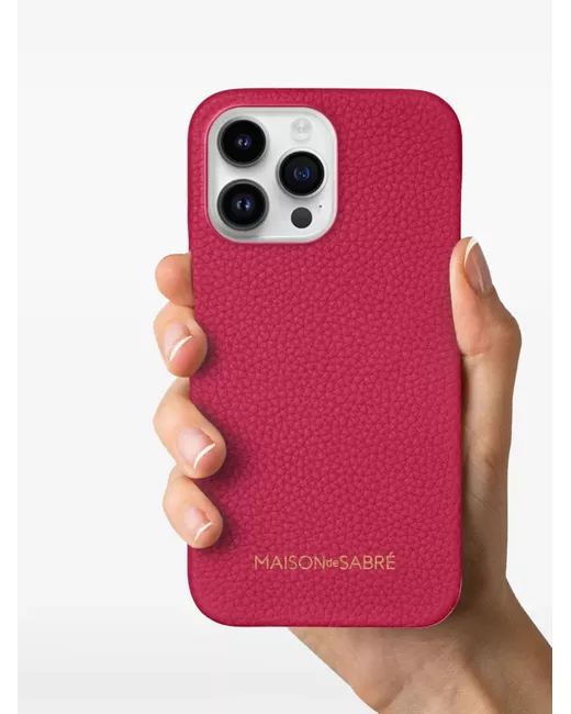 Women's Pink textured-leather iPhone 14 Pro phone case