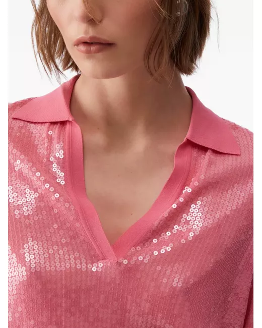 pink sequin embroidery V-neck long sleeves regular fit