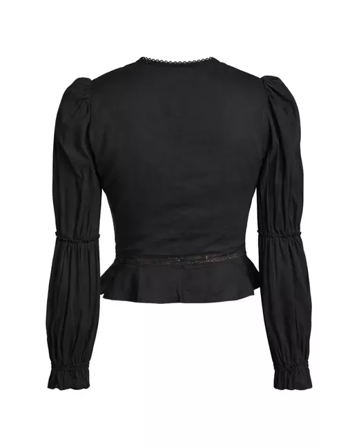 black V-neck long sleeves button fastening peplum hem