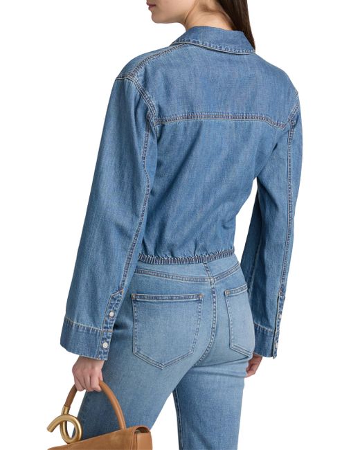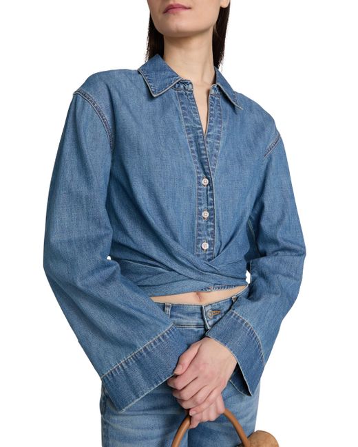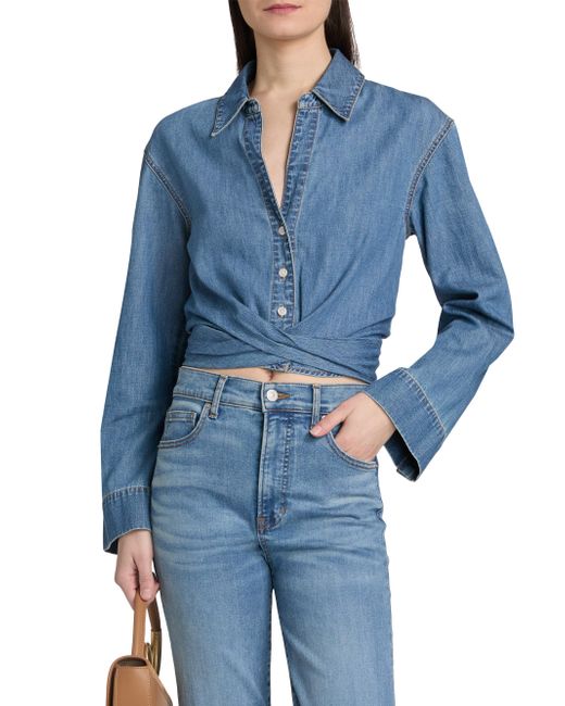 Crafted of cotton, the Timothy denim shirt from Veronica Beard is styled with a twisted, cropped design featuring long bell sleeves. Point collar Long bell sleeves Button-front closure 100% cotton Machine wash Imported SIZE & FIT About 19" from shoulder to hem Model measurements: 5'10" tall Model is wearing a US size Small ABOUT THE BRAND Veronica Beard was founded by sisters-in-law Veronica Miele Beard and Veronica Swanson Beard in 2010. With a strong belief in enduring personal style, the co-designers focus on elevated everyday pieces, like their signature structured blazers and easy-chic dresses. Contemporary Sportswear - Denim And Bottoms > Veronica Beard > Saks Fifth Avenue. Veronica Beard. Color: Ripple Haze. Size: 00.