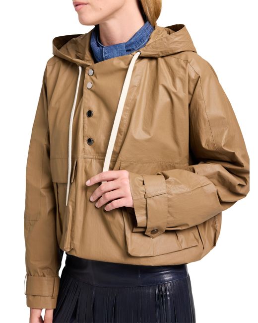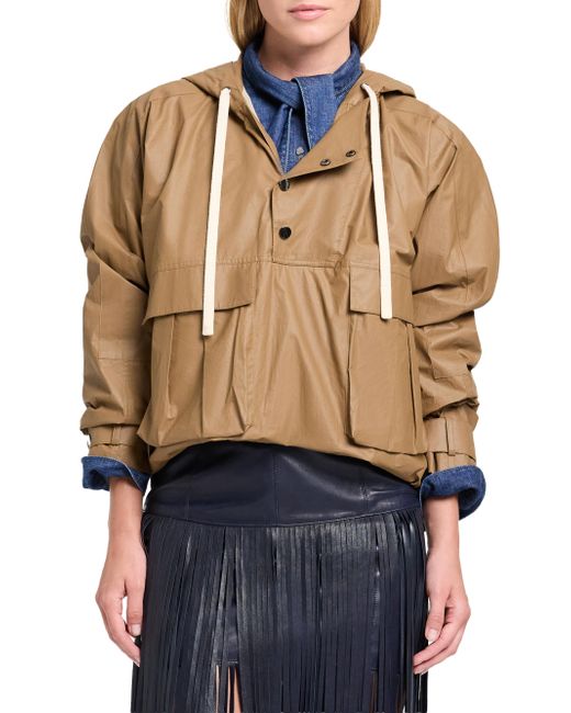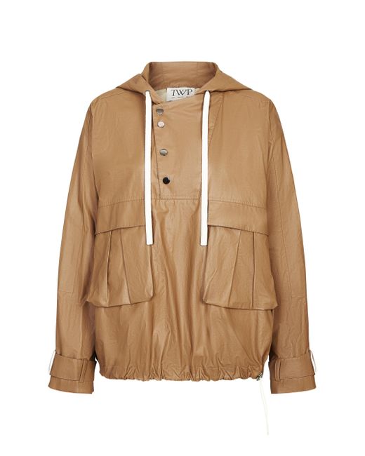 Crafted of water-resistant coated canvas, TWP's Rain Check jacket features an oversized drawstring hood, polished snap closures, and an elasticized hem for a roomy silhouette. Drawtring hood Long sleeves, snap-strap cuffs Side flap pockets Elasticized hem Front snap closure 85% cotton/15% polyurethane Dry clean Imported SIZE & FIT About 26" from shoulder to hem Model measurements: 5'10" tall Model is wearing a US size Small ABOUT THE BRAND New York-based label TWP offers modern, effortless takes on go-to wardrobe staples. On a mission to democratize luxury, founder Trish Westcoat Pound, of Haute Hippie fame, focuses on high-quality details and subtle-yet-alluring silhouettes to create elevated, everyday pieces-all made in the U.S. with fabrics sourced from Italy. Contemporary Sportswear - Contemporary Lifestyle > Twp > Saks Fifth Avenue. TWP. Color: Ermine. Size: Medium.