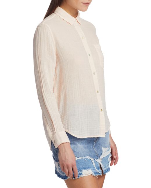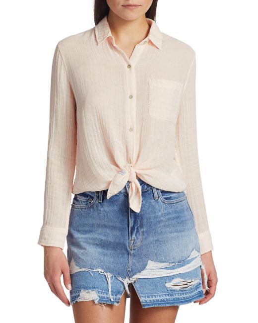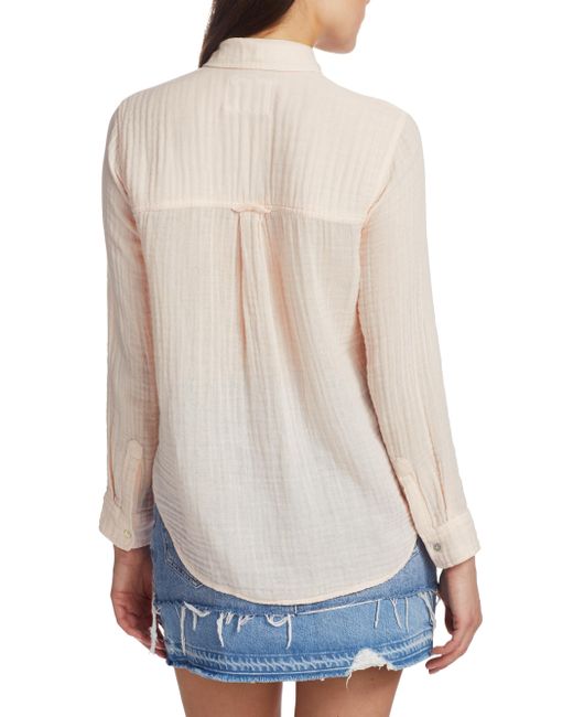 Breathable cotton button-down with a classic point collar. Point collar Long sleeves Button front placket Button barrel cuffs Shirttail hem Cotton Machine wash Imported SIZE & FIT About 27.5" from shoulder to hem Model shown is 5'10" (177cm) wearing US size Small. Contemporary Sportswear - Casual Separates > Rails > Saks Fifth Avenue. Rails. Color: Petal. Size: XS.