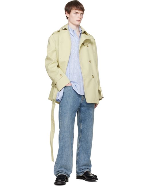 Cotton-blend gabardine trench coat. · Button tab at spread collar and cuffs · Double-breasted button closure · Welt pockets at waist · Belt loops and detachable cinch belt · Epaulet at dropped shoulders · Storm flap at back yoke · Broadcloth and satin lining Supplier color: Butter