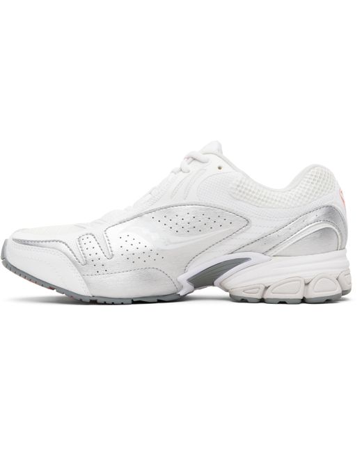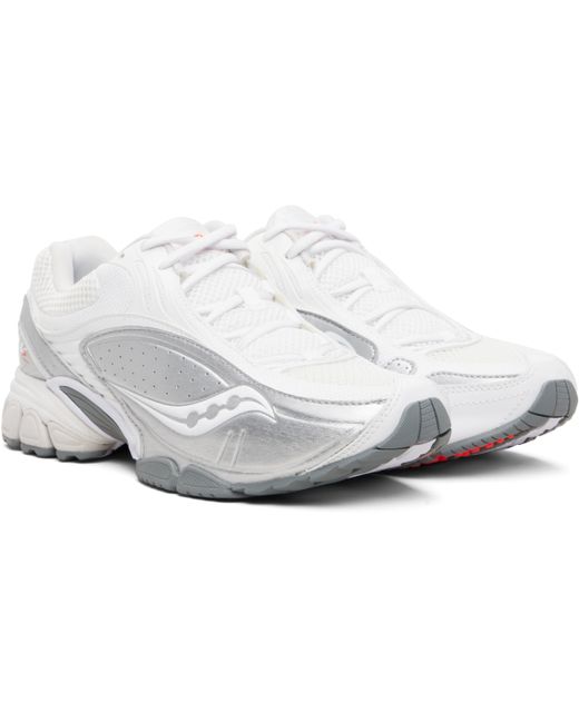 Low-top mesh and buffed faux-leather sneakers. · Lace-up closure · Logo patch at padded tongue · Padded collar · Perforated detailing and embossed logo at sides · Logo printed at heel tab · Mesh lining · ProGrid foam rubber midsole · Treaded rubber sole Supplier color: Silver/White