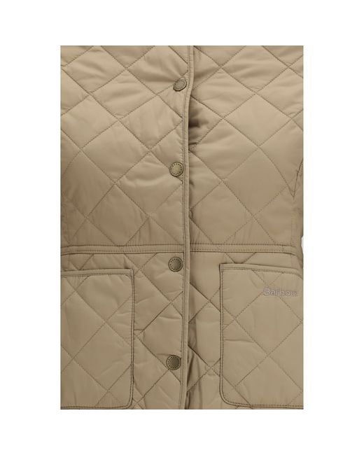 The Deveron Quilt Jacket by Barbour, classic velvet ribbed collar, snap button front closure, two slit patch pockets on front, iconic brand monogram embroidered on front, all-over quilted design, monochrome pattern, regular fit. Season: SS26 Composition: 100% Polyester
