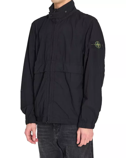 black high collar badge detail front zip closure elasticated cuffs elasticated hem