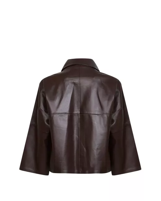 brown leather button fastening front pockets collar