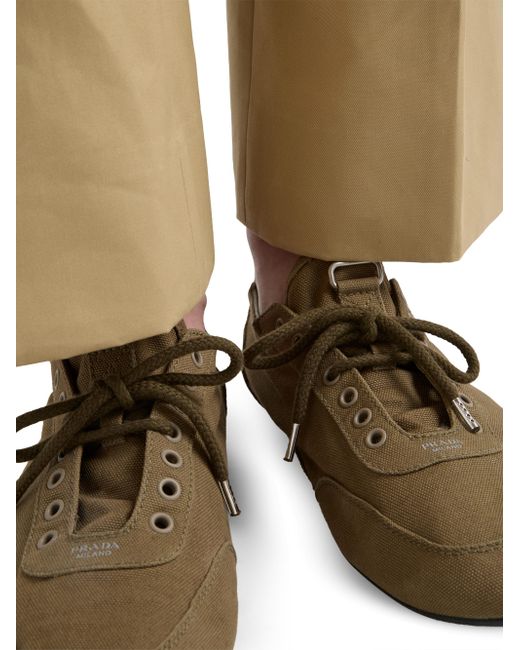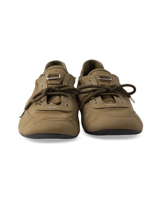 Upper with vintage finish Leather lining on the heel Screen-printed Prada Milano logo Laces closure Rubber sole, 5 mm Geometric tread Removable fabric-covered insole 100% Cotton Imported. Lsd Rtw - Prada Rtw > Prada > Saks Fifth Avenue. Prada. Color: Green. Size: 6.