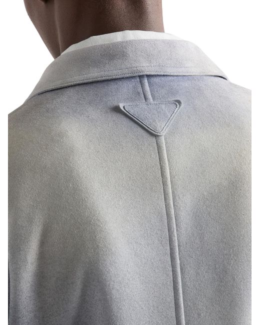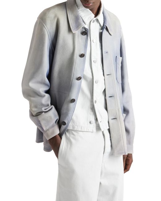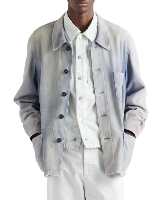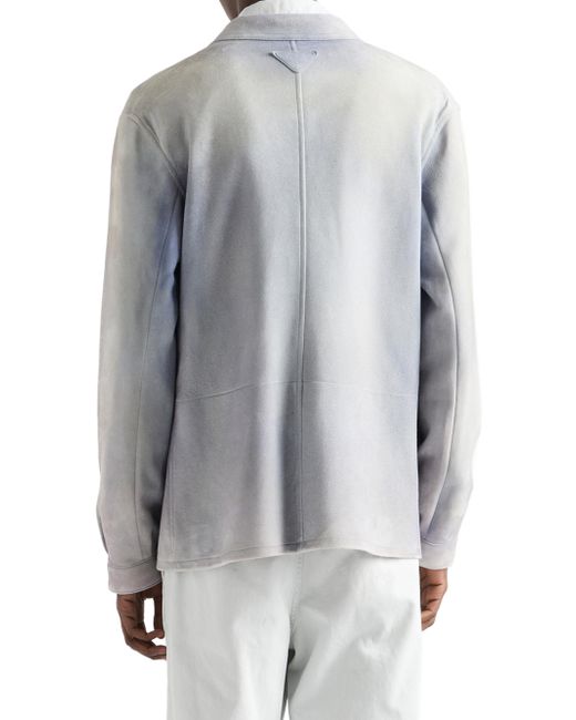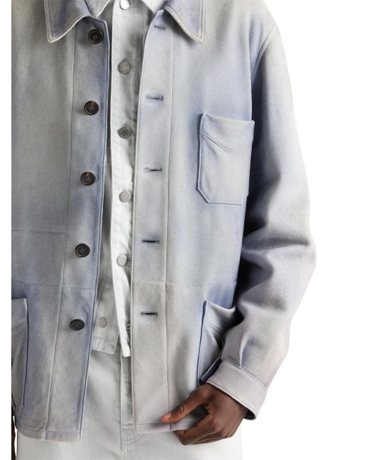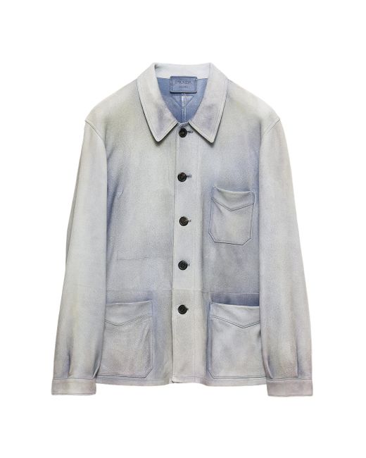 Unlined garment Regular fit Center button closure Shirt-style collar Raglan sleeves and shirt-style cuffs Patch pockets Leather triangle logo Vintage treatment 100% Lamb Leather Imported. Lsd Rtw - Prada Rtw > Prada > Saks Fifth Avenue. Prada. Color: Blue. Size: 46.