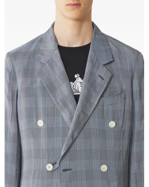 light blue check pattern double-breasted button fastening notched lapels flap pockets