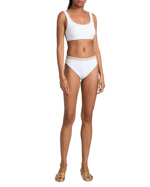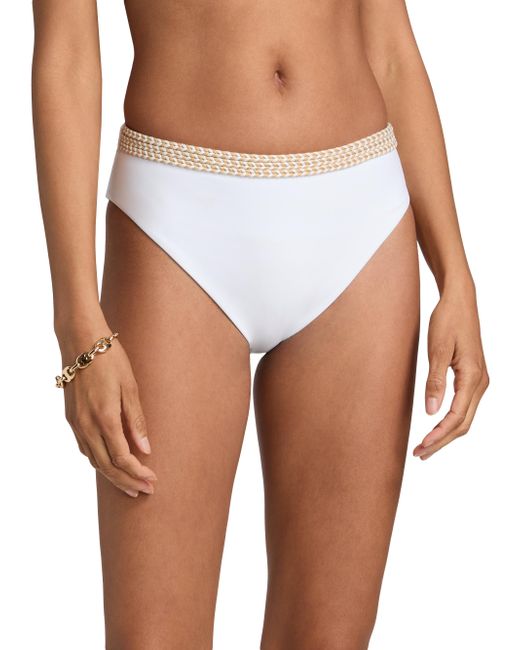The Peggy bikini bottom from Ramy Brook is crafted of a stretch blend and features braided trim at the waistband. Pulls on 82% nylon/18% spandex Lining: 92% polyester/8% spandex Hand wash Imported Please note: Bikini top sold separately. Outerwear And Swimwear - Contemporary Swim > Ramy Brook > Saks Fifth Avenue. Ramy Brook. Color: White. Size: XS.